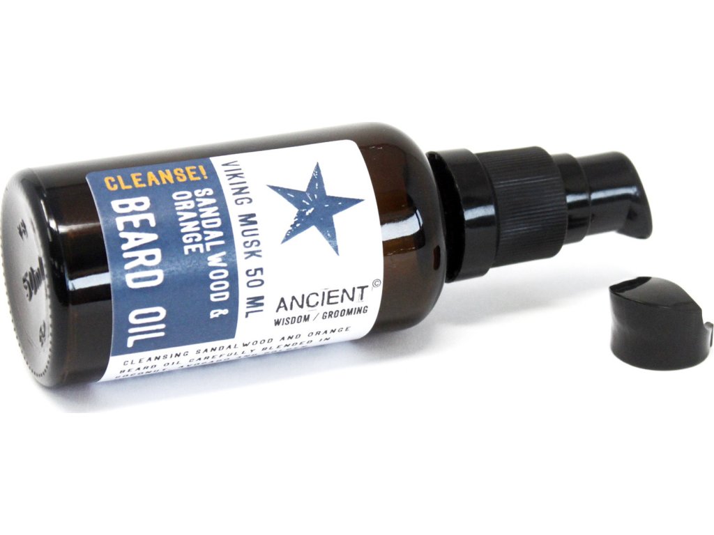 50ml Olej na Bradu - Vikingské Pižmo - tento naturálny a veľmi jemný olej na fúzy je vyrobený z éterických olejov z pomaranča a santalového dreva, ktoré sú starostlivo zmiešané s kokosovým, avokádovým a zlatým jojobovým olejom pre každodenné použitie.
