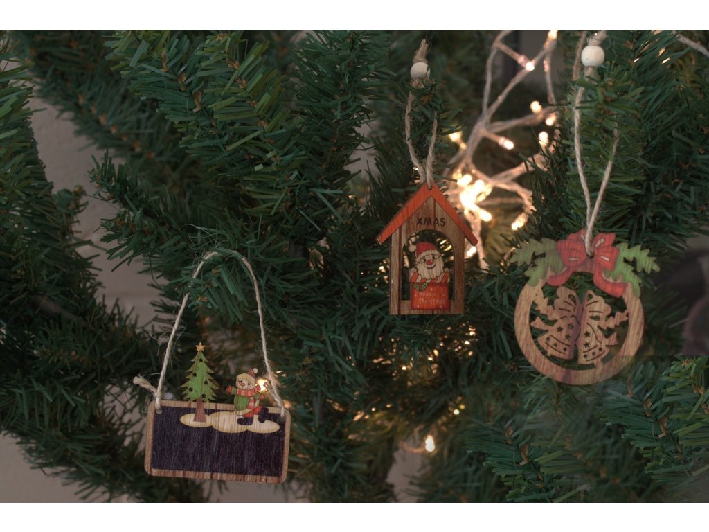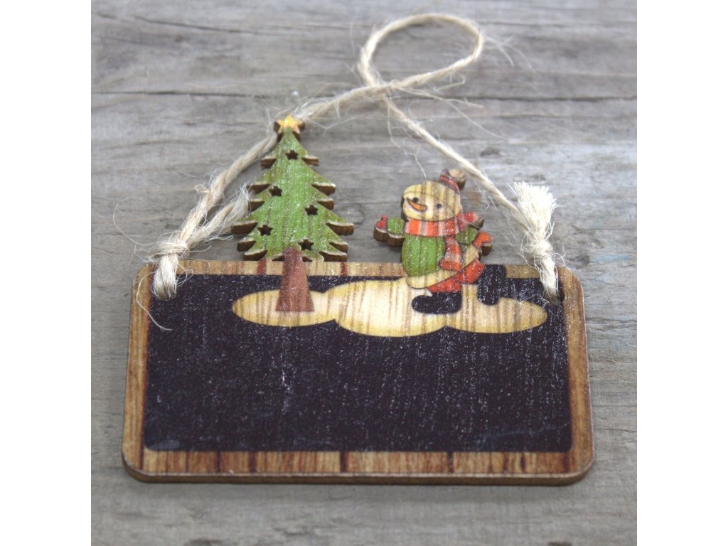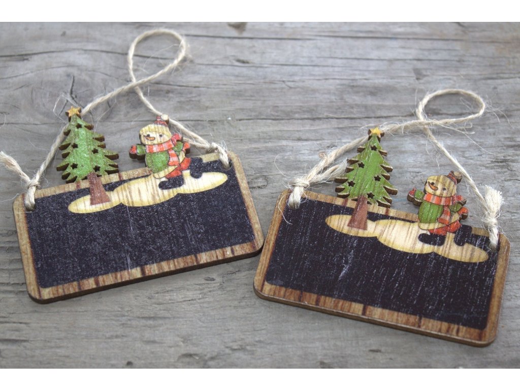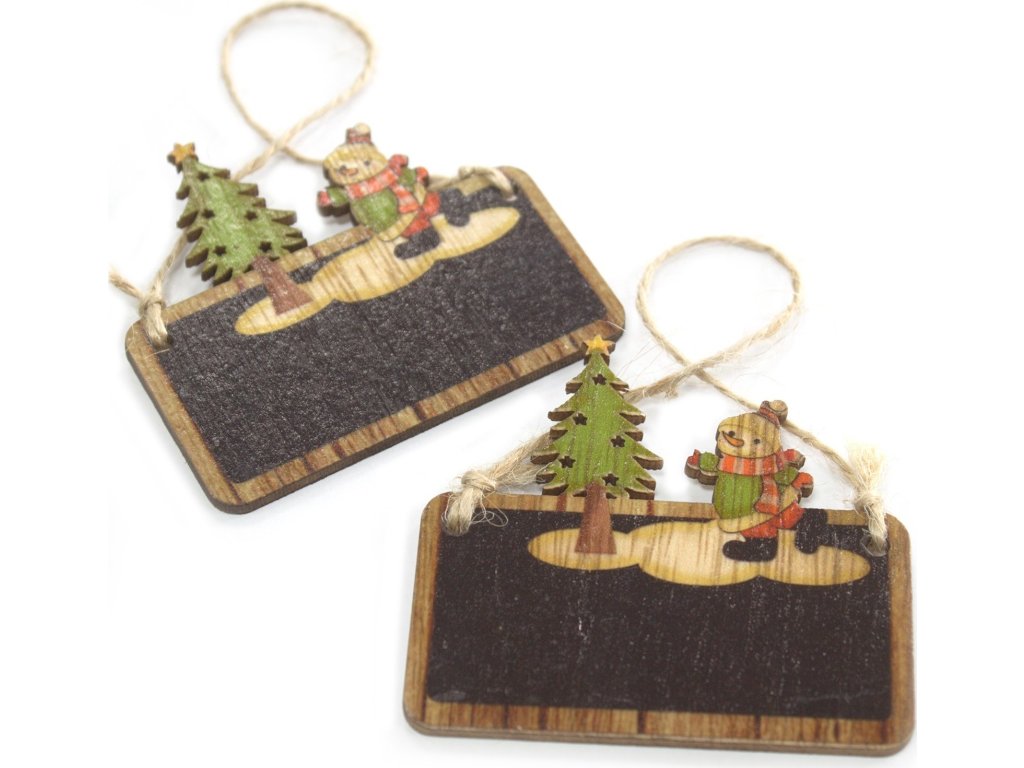 Set 2 Drevených Vianočných Dekorácií - Snehuliak & Stromček