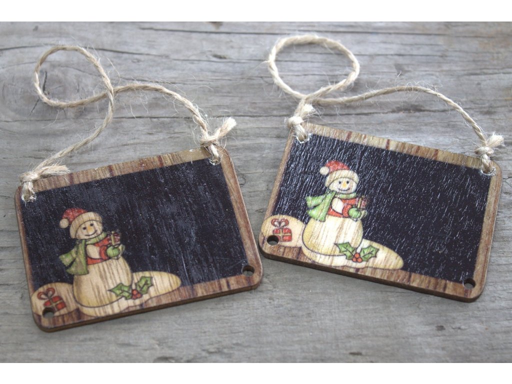 Set 2 Drevených Vianočných Dekorácií - Snehuliak