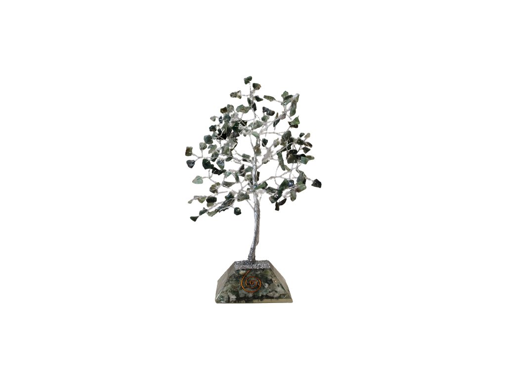 Stromček Šťastia s Orgonitovým Podstavcom - 160 Kamienkov - Machový Achát