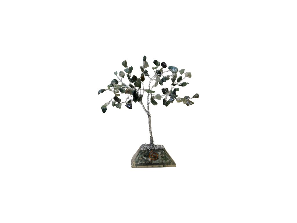 Stromček Šťastia s Orgonitovým Podstavcom - 80 Kamienkov - Machový Achát