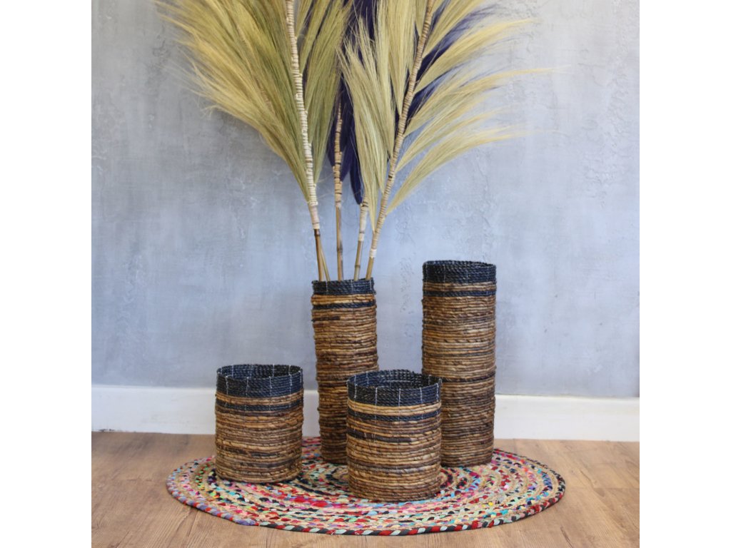 Sady Váz a Košov z Morskej Trávy Ancient Wisdom, sú ručne tkané a farbené v Indonézii. Sú ideálne do každej miestnosti, interiéru či exteriéru, môžete ich použiť ako kvetináč alebo ako úložné koše na hračky a rôzne predmety.